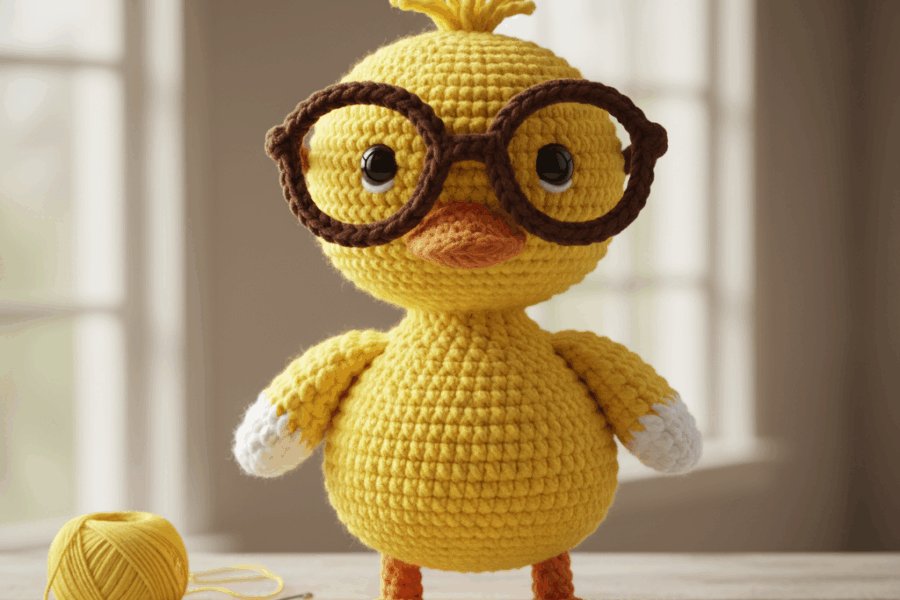 Bring this charming mini crochet duck to life! Follow the Amigurumi Duck Pattern step by step, from body to wings, beak, and glasses, and create your own handmade Amyliva Duck.