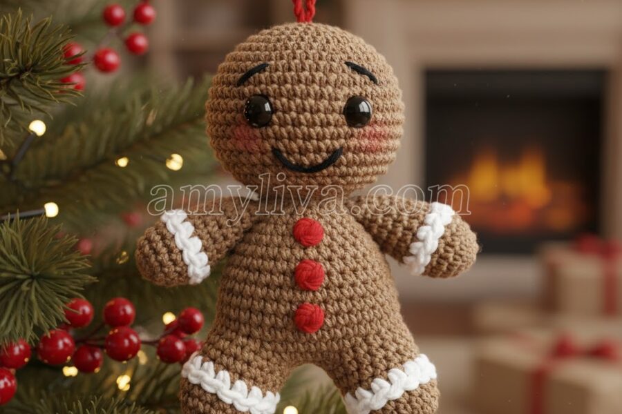 Amigurumi Gingerbread Man Christmas Ornament – Free Crochet Pattern & Step-by-Step Tutorial