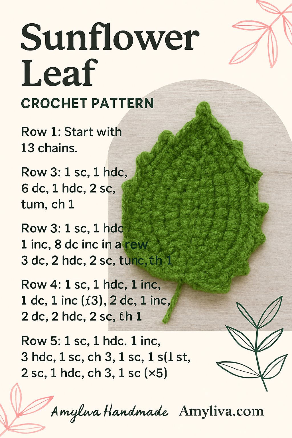 How to Crochet a Realistic Sunflower Leaf – Easy Leaf Pattern Tutorial