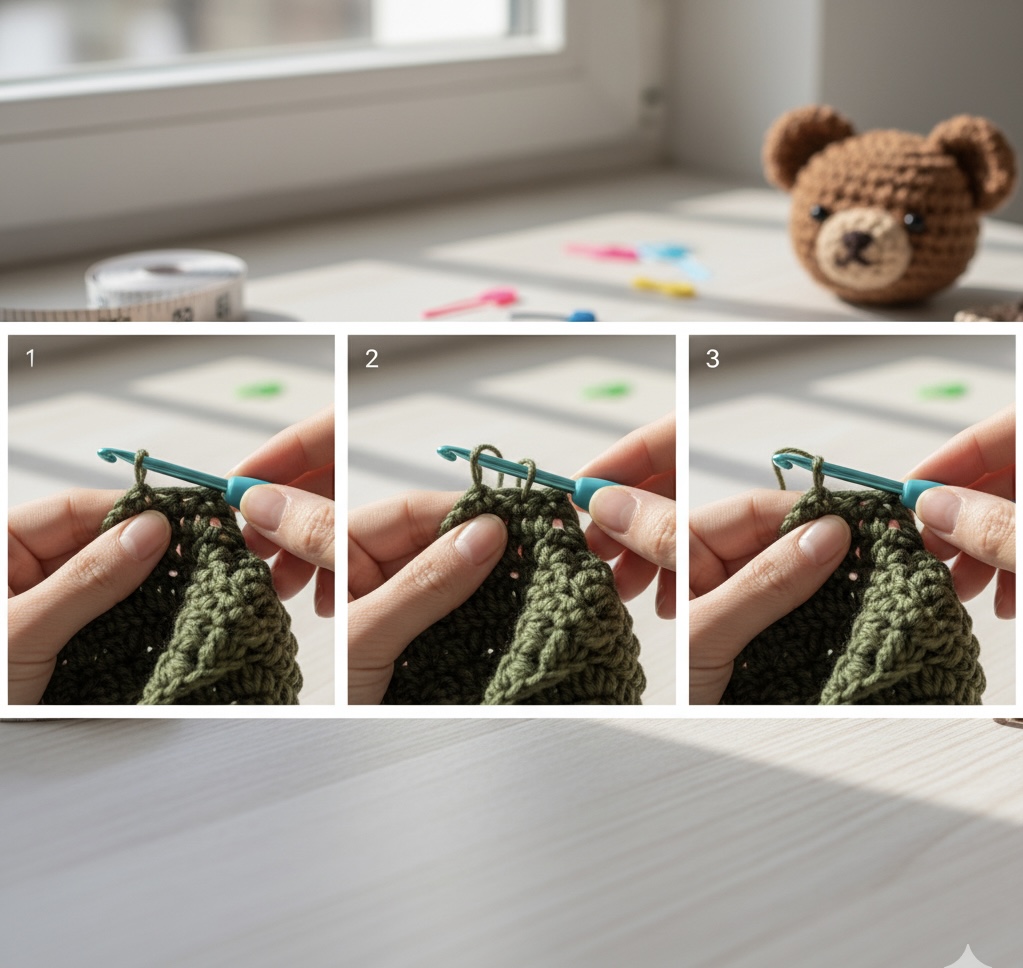 1. Magic Ring (MR / MC): The perfect start for all round pieces (head, body). Ensures a perfect, zero-hole center.