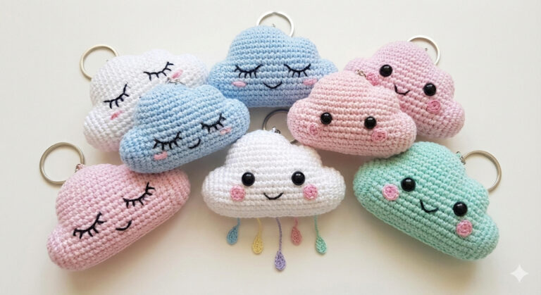 Brighten up your bag with this adorable Amigurumi Cloud Keychain! ☁️ This beginner-friendly, free crochet pattern is quick to make and adds a fluffy, cute touch to any backpack. Perfect for a spring DIY project!