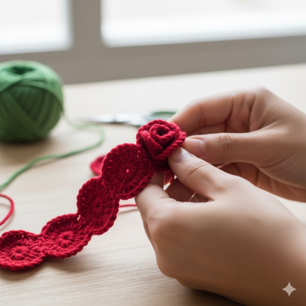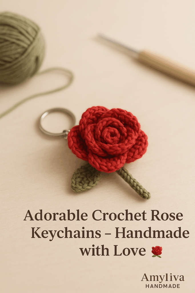 Learn to crochet a mini rose keychain with this easy step-by-step tutorial. Perfect gift, bag charm, or beginner-friendly amigurumi project – Amyliva Handmade.