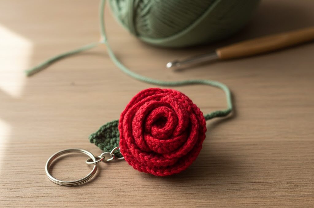 Amigurumi Rose Keychain – Easy & Elegant Crochet Flower Pattern for Beginners
