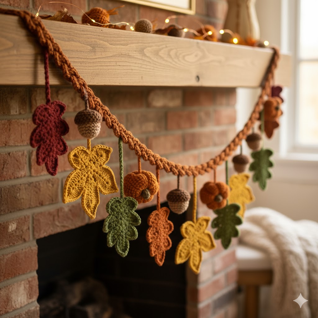 Chain a long string and slip stitch your leaves along it to create a stunning, rustic banner for your mantelpiece, window frame, or doorway. You can mix the leaf shapes and colors for a vibrant, realistic fall display. Adding small crochet acorns or mini pumpkins can elevate this project further!