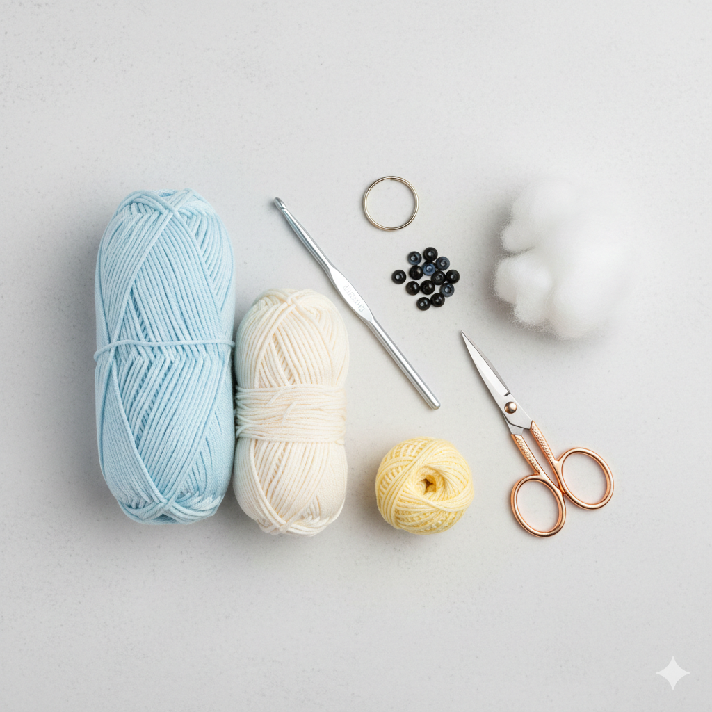 - Crochet hook: 2.0 mm – 2.5 mm