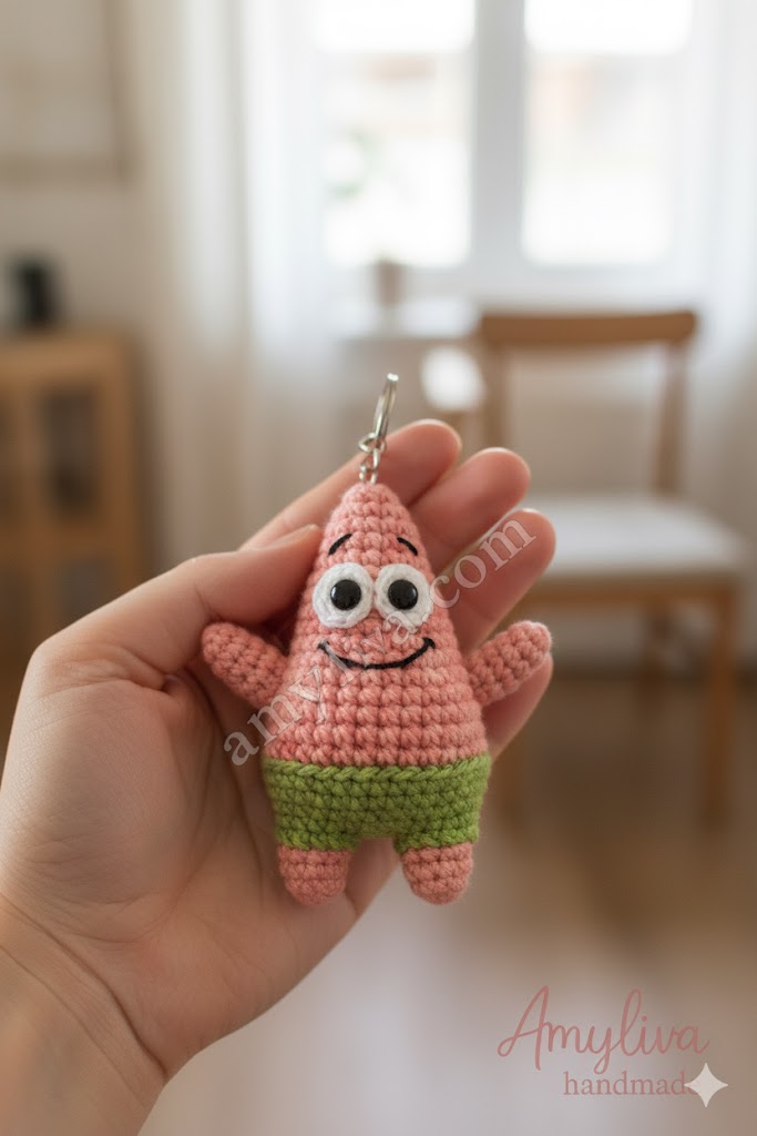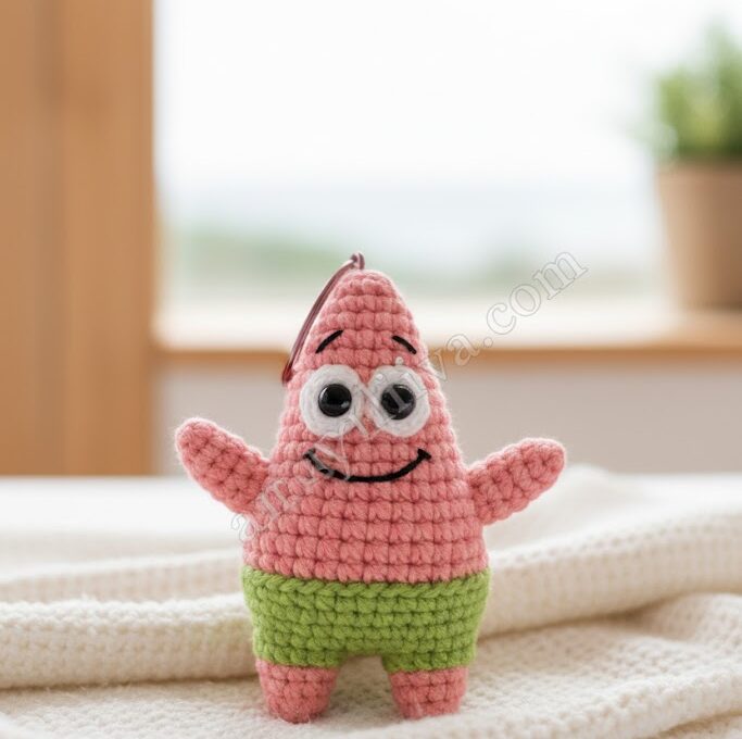 Congratulations! You’ve navigated the depths of Amigurumi and created your very own Patrick Star Keychain. This little pink starfish is more than just a craft; he’s a testament to your growing crochet skills and a fun, quirky addition to your daily essentials.