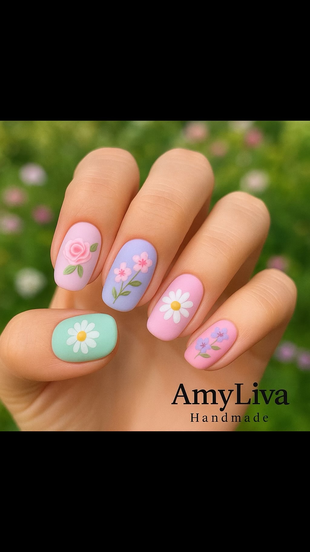 Each nail tells a story—of flowers blooming, skies glowing, and a palm tree swaying gently at golden hour.