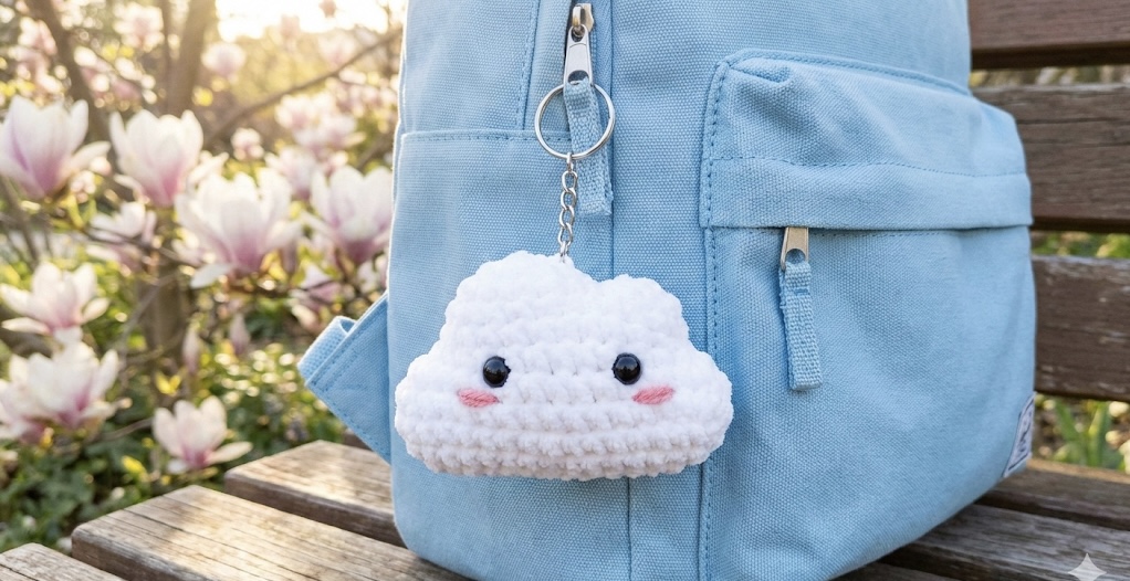 Brighten up your bag with this adorable Amigurumi Cloud Keychain! ☁️ This beginner-friendly, free crochet pattern is quick to make and adds a fluffy, cute touch to any backpack. Perfect for a spring DIY project!