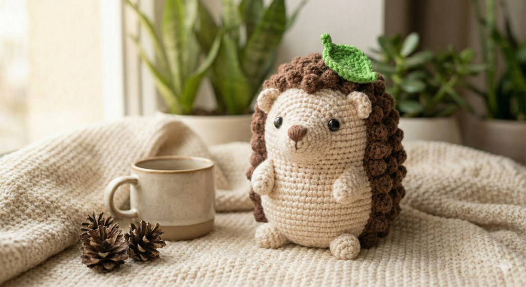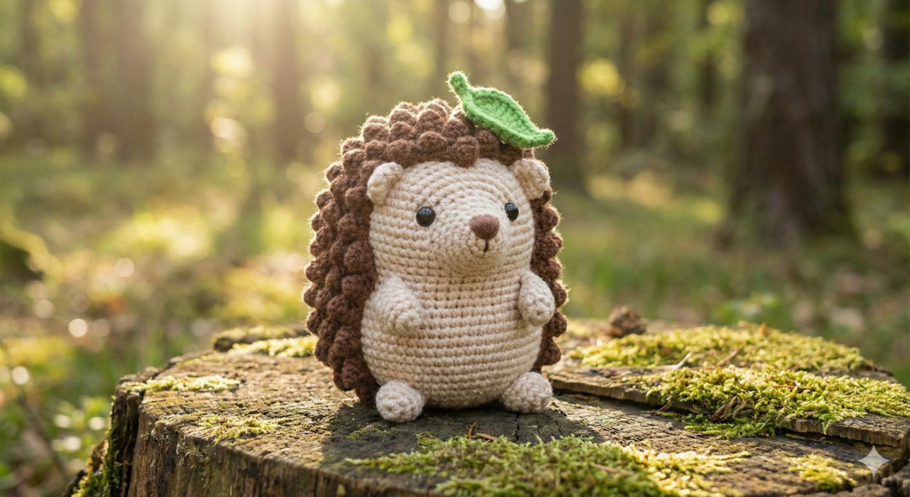 Hedgehog Amigurumi Crochet Pattern – Cute Handmade Toy with Leaf Detail