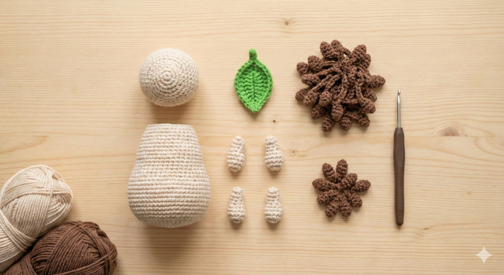 Each piece is crocheted individually and assembled at the final stage. This construction method allows better control over shaping and makes the pattern easier to follow.