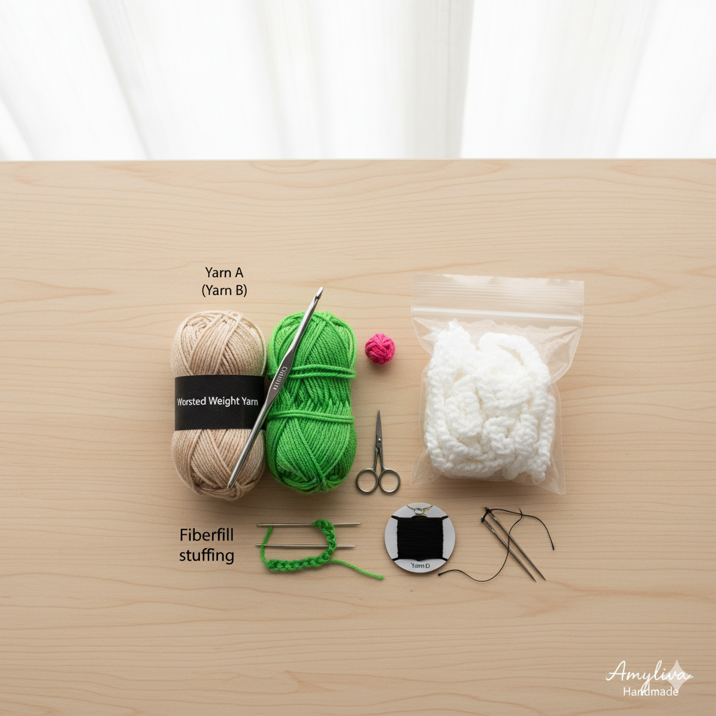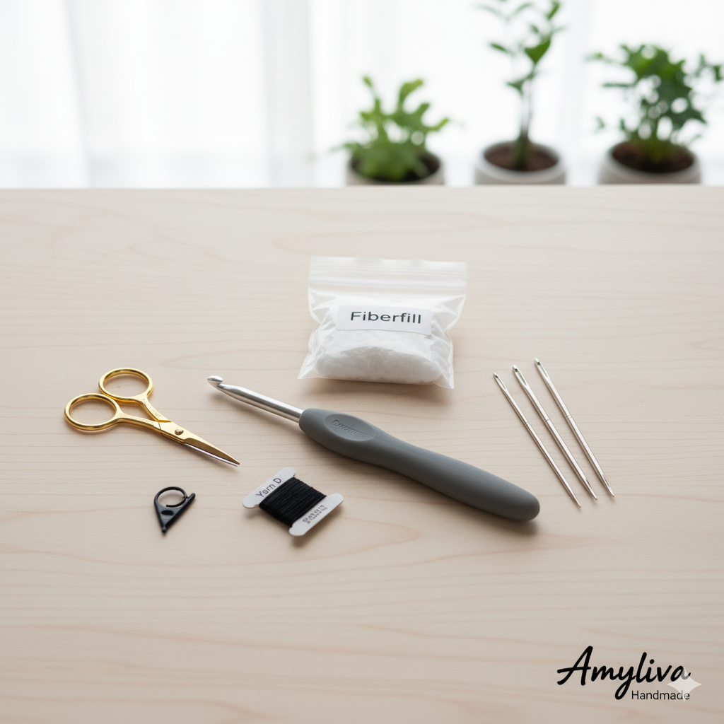 • Crochet Hook: We suggest a 3.0 mm or 3.5 mm hook. Always choose a size smaller than what your yarn label recommends. This is a critical tip for amigurumi, as it creates the tight stitches necessary to prevent the white Fiberfill from showing through your finished piece.