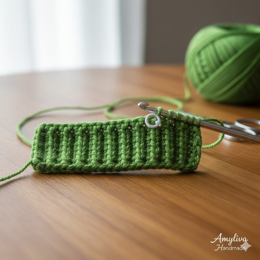 • Pro Tip: Working in BLO on this piece ensures the front loop remains visible, creating the realistic vertical ribbed texture.