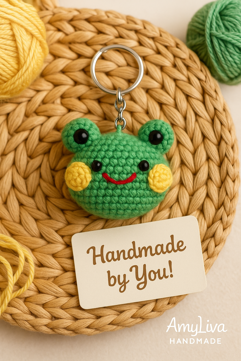 🌟 Congratulations! You now have your very own handmade crochet frog keychain. Perfect for gifting, selling, or adding to your summer bag!