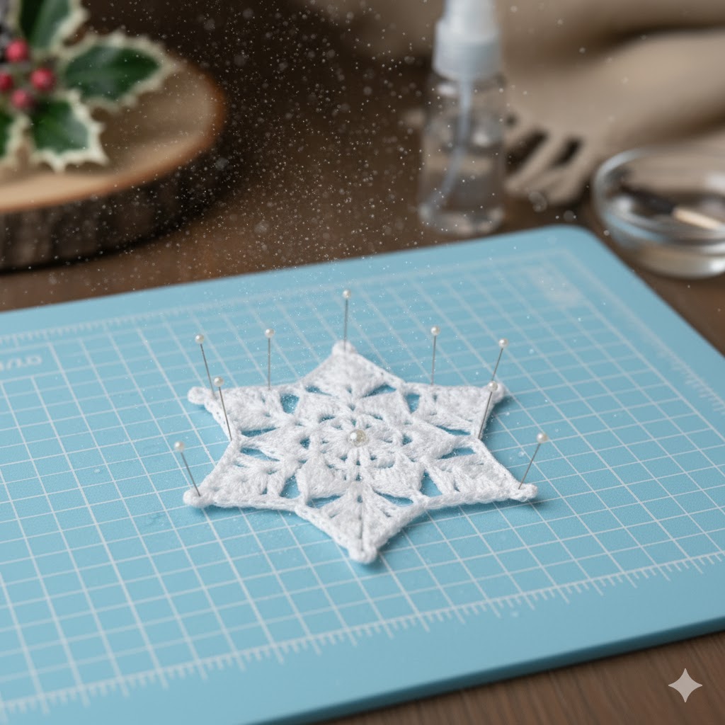 Pinterest Description: Make this delicate crochet snowflake ornament with our easy step-by-step pattern. A perfect handmade Christmas gift or decoration idea. Learn how to block, stiffen, and finish your crochet snowflake at amyliva.com.