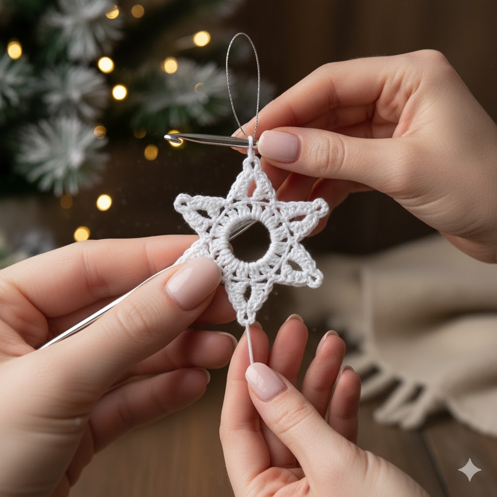 This easy step-by-step pattern will help you make delicate, icy designs — perfect for Christmas tree decor or cozy winter gifts