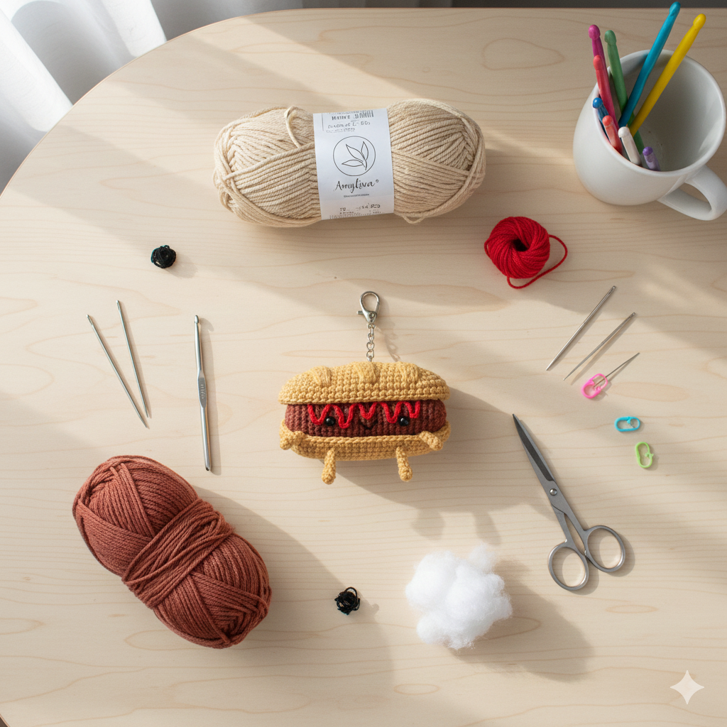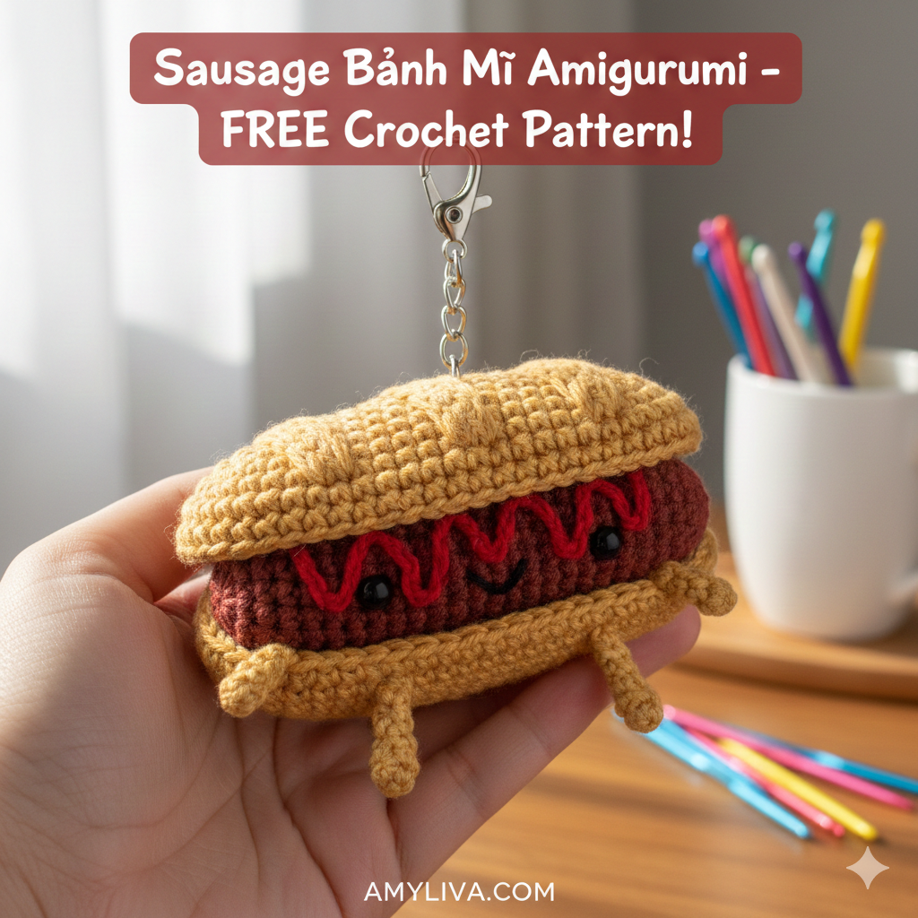 Crochet food amigurumi has taken the handmade world by storm, and mini food keychains are among the most popular crochet projects shared on Pinterest, Instagram, and Etsy. If you are searching for a charming, beginner-friendly, and highly shareable crochet idea, the Sausage Bánh Mì Amigurumi Pattern is a perfect choice.