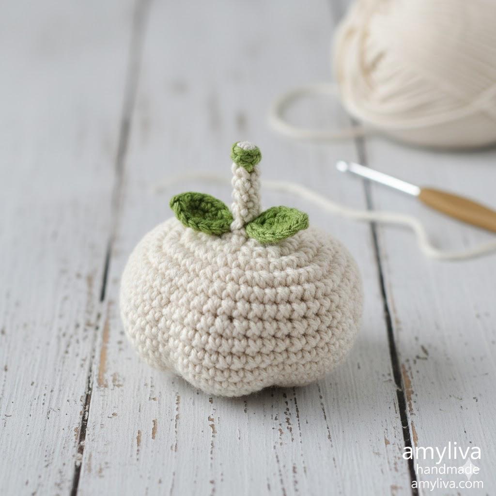 Soft-toned amigurumi garlic design featuring delicate crochet details and handmade green leaves. A minimalist and…