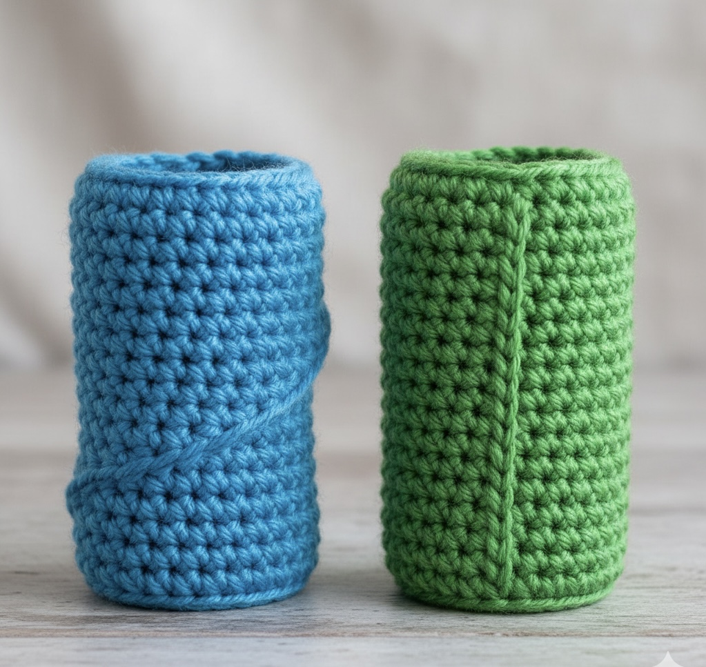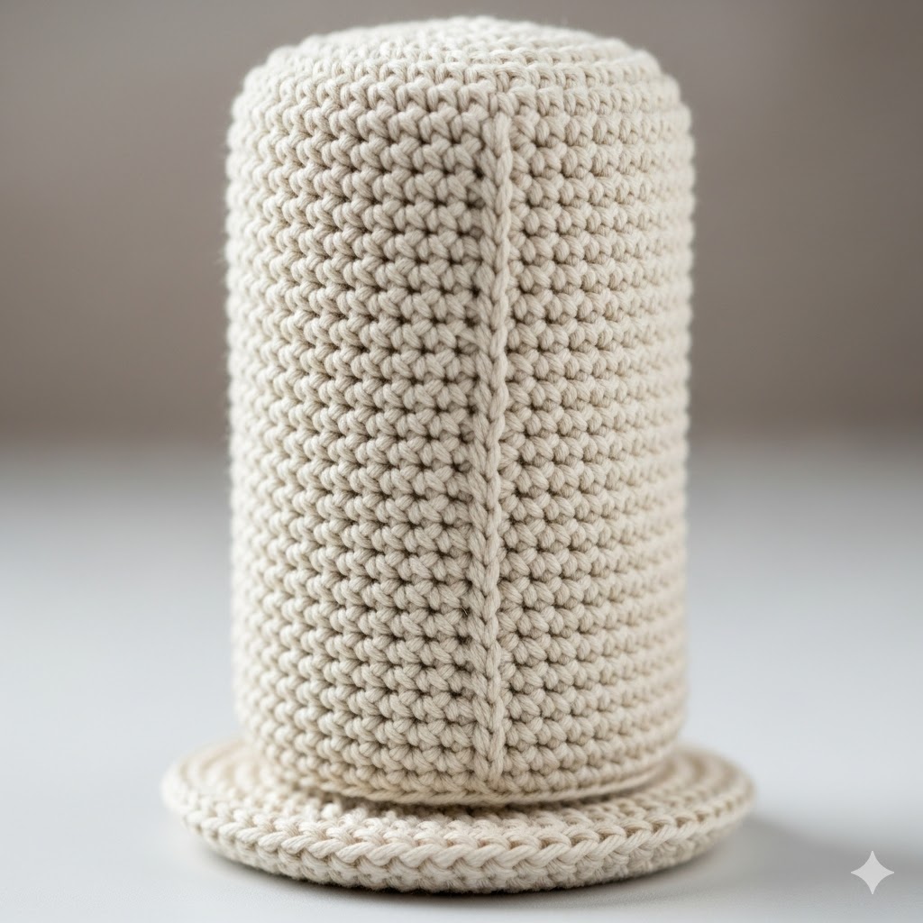 - Cardboard/Plastic Inserts (for wide cylinders): For bases that must be perfectly flat (like a bucket or basket), cut a piece of rigid plastic or cardboard slightly smaller than the base diameter and insert it before the first even round.