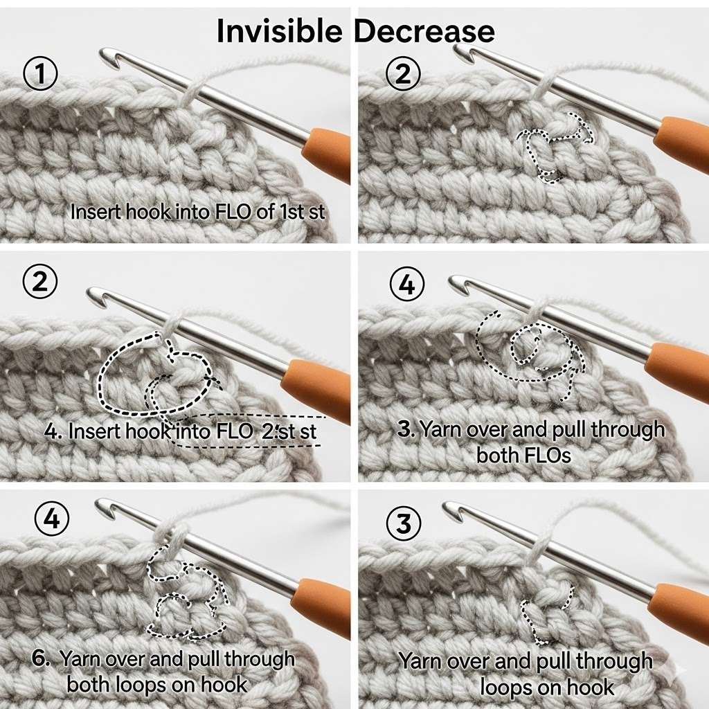 - The Fix: Before starting your decrease rounds, add one or two Slip Stitches (sl st) at the start of the first decrease round. This small movement adjusts the working height, aligning the decreases more centrally and making the spiral transition less visible.