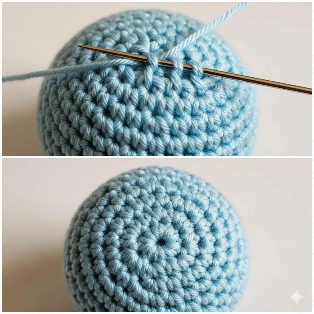 A: This is the most common issue! It happens when your increase stitches stack directly on top of each other in every round. To create a smooth curve, you must stagger your increases. On every even-numbered increase round (e.g., R4: (2 sc, inc) x 6 or R6: (4 sc, inc) x 6), split the single crochet count at the beginning and end of the round. This distributes the new stitches more evenly around the circle, resulting in a perfectly rounded sphere.