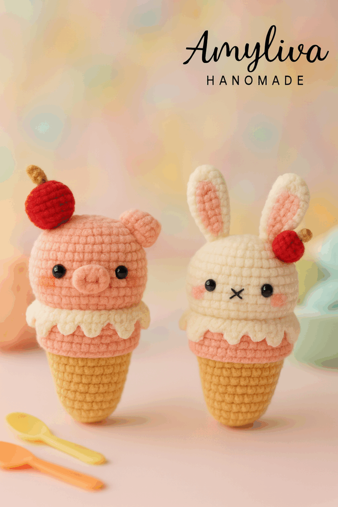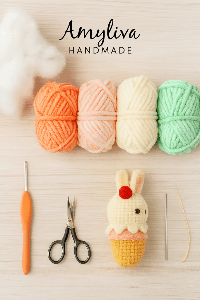 • Yarn: For amigurumi, we recommend using worsted-weight (size 4) yarn. Cotton or acrylic blends are perfect as they create tight stitches that prevent the stuffing from showing through. You’ll need light pink or off-white for the head, a light beige for the cone, and a contrasting color for the dripping cream and fruit. Finding the right yarn is crucial for any DIY crochet project. You can find high-quality yarn crafts supplies at local craft stores or online shops specializing in amigurumi.