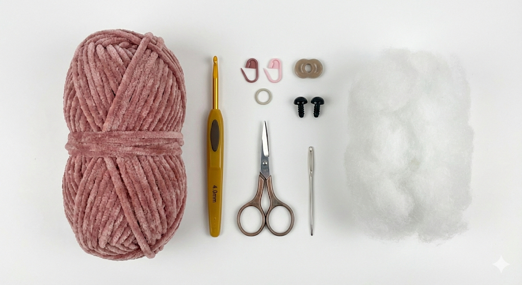 - Velvet yarn in your preferred color (1 skein is enough)
